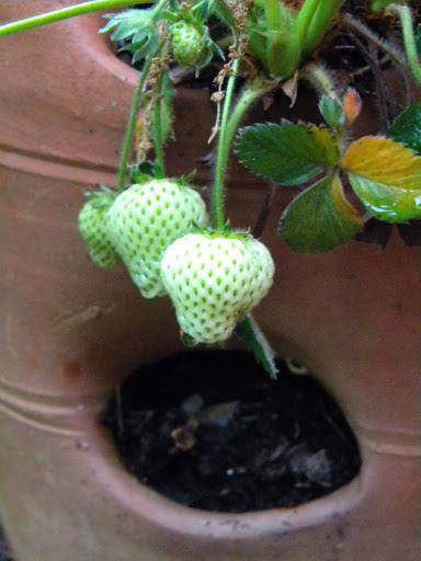 I’m wondering how many strawberries the rabbits and squirrels are going to leave us this year. They are starting to look awfully yummy, aren’t they?I’ve had this pot of strawberries for a few years now. I now also have 2 patches of volunteer strawberry plants that have jumped off this pot that produce way more than the mama pot. I think my goal for next spring is to have a new bed built to put them all in one spot in the ground and give up on the cool planter pot. Maybe I’ll throw some hens & chicks in it instead.