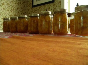 Just in the nick of time, our Sunday night company arrived, one of whom has lots of experience in the arts of preserving food, and he most gratefully jumped in and lent a hand to the gumbo process so I could finish getting the peaches put up. The first round went beautifully, but the second round? A jar exploded. I had taken the time and inspected each jar this go round, and for the life of me am just so confounded by this problem. Really? Three times in a row? My canning partner suggested that the water was TOO hot, that I should just cool the water down a bit and start over. Which I did and the second batch turned out beautifully too. I am now reminded why I like to can with someone else and someone that I haven’t taught to can – because I’m still learning too. My confidence is restored in my ability to can. I’m ready for the next round…..I was reminded the other day I do make some mean Pickled Green Beans. That might be next up.