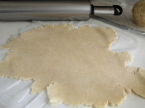 Admittedly, I am not the best roller. I tend to get Edie to do it for me, but lately she’s been making me do it myself. I’ve learned that it doesn’t have to be perfect, as long as the crust is uniform in thickness and big enough to cover the bottom of the pan. You can sort of fudge it from there.