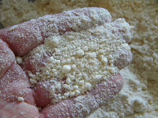 Fine crumbs. It took me years to figure that out. (That’s what biscuit dough is supposed to look like as well by the way. Amazing how learning one small trick makes all your cooking that much better, isn’t it?)