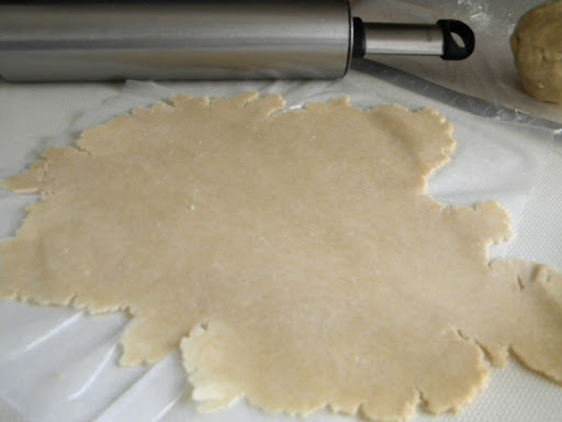 Admittedly, I am not the best roller. I tend to get Edie to do it for me, but lately she’s been making me do it myself. I’ve learned that it doesn’t have to be perfect, as long as the crust is uniform in thickness and big enough to cover the bottom of the pan. You can sort of fudge it from there.