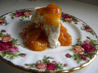 To start off the baking, I mean, birthday week, I decided to go with a cheese cake.    I topped it with peaches I canned from our tree in the front yard.  I cooked them just a wee bit, added some corn starch to thicken it and voila.