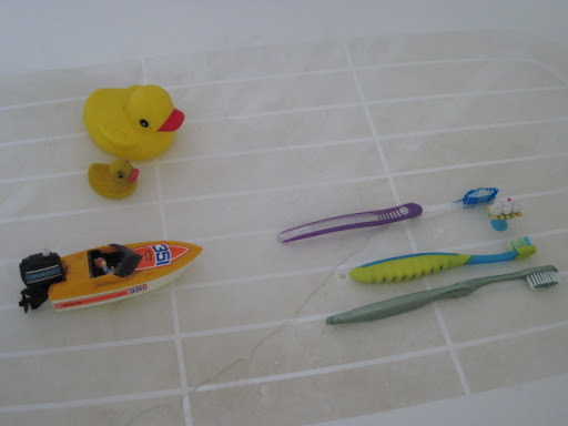 That would be the entire family of toothbrushes on the floor of my less than clean tub.