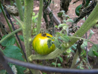 A Green Zebra Stripe.  It was yummy, although slightly on the small side.  Pat & I had it on a nice salad the other night for dinner.  (Edie was off having dinner with friends.)    I picked an Early Girl this week too.   My granddad used to say life was good if you could pick your first tomato before the first of July.  I concur.
