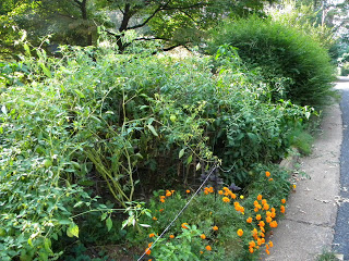 While my kitchen counters haven’t been overcome by my tomatoes, I have been lucky enough to have generous friends share their bounty, so that we have still been able to eat homegrown tomato sandwiches for as many meals a day as we care to. Thankfully, tomato plants have growing season, and the blooms I saw a few weeks ago are now green tomatoes that are weighing down my plants again. And I got to pick a red one yesterday!!! A very small grape one, but, a red one nonetheless. Perhaps the battle has turned in my favor? One can only hope…..