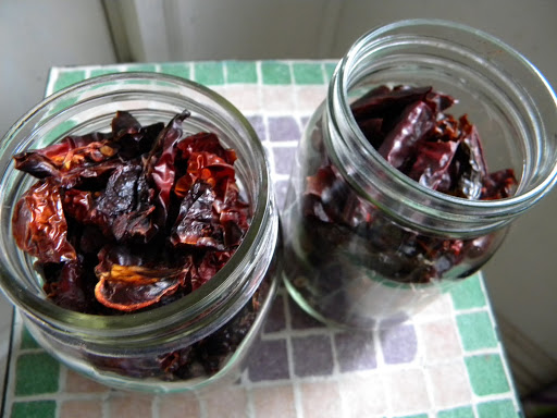 While I had the oven on, I threw in some Thai Cayenne peppers a friend gave me and dried them out as well. I read you can hang them up and they’ll dry out in your kitchen over time, but the oven was on, and well, I’m not a patient person.