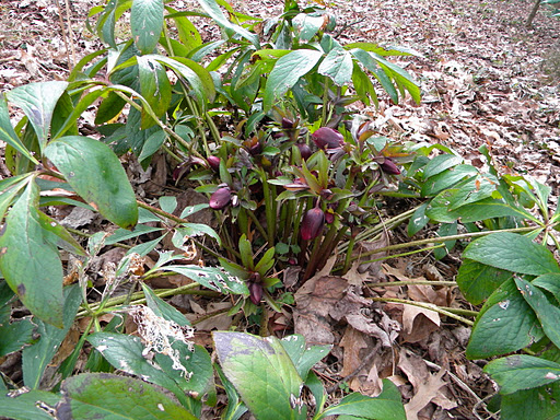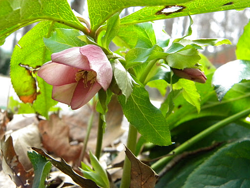 My ‘neighbor’ hellebore is putting out some blooms too.