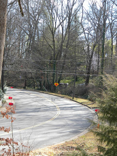 Yesterday afternoon, I looked out my back door and saw the empty red recycling bins going up the hill on Rose Hill.  As I walked up the road yesterday, the trend of red recycling bins continued up around the bend.