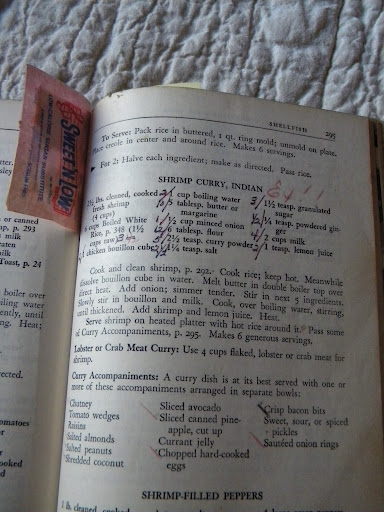 This one being my favorite. An old Sweet & Low packet to mark the Indian Shrimp Curry recipe, with notes. Yes, I will be making this and soon.