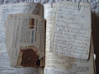 The inside covers and all blank pages on the inside of her Joy of Cooking were filled with handwritten recipes. Some are water damaged, but they are a treasure.