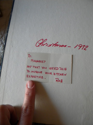 The note on the inside of the card. More than a few of her cookbooks had similar inscriptions.