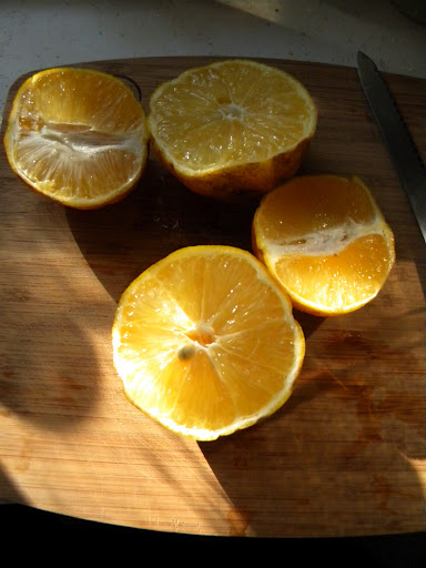 I thought it would be great to try this recipe out while I had such amazing grapefruit. Certainly this would turn out fabulously and then I would be applauded for such a wonderful breakfast treat. The recipe called for grating the rind, but as the exterior was so damaged, I sort of skipped that part, which I do realize was probably a crucial step to the flavor and while I do know better, you wouldn’t have wanted that zest either. I cut them open to juice them and THAT’S when I realized they were a lemon, and not a grapefruit.