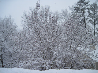 As I walked by this morning, the pink showing through the snow was lovely. If you click on it, you can see a bigger view, one that shows the pink more.