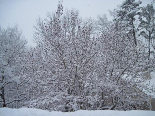 The tulip magnolia in the front yard has been making strides towards blooming, so while the hints of pink in the snow are lovely on it, I’m worried it will be a giant brown mess for the next month.