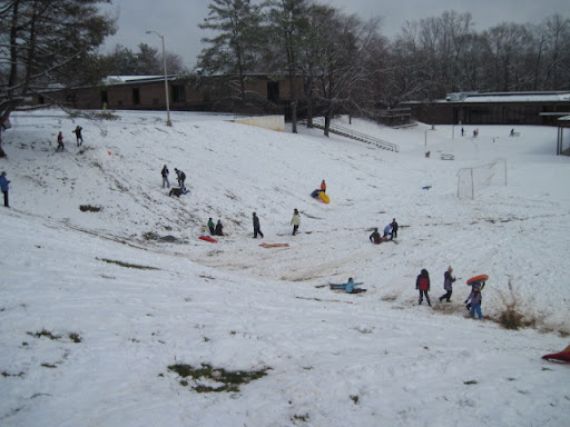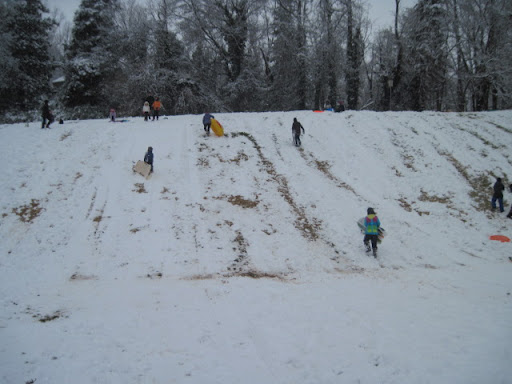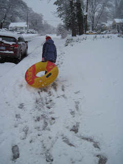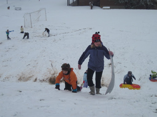 One of the things I love about this neighborhood is that a snow day automatically means everyone heads to the hill at Walker School to sled. We brought the tube, although the sleds were faster on this snow. Thankfully, everyone shares and is willing to swap rides.