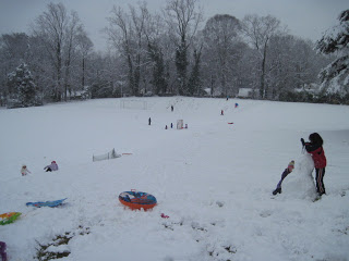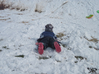 There was a group of wanna-be snowboarders that kept to the smaller hill. Although every one of the hills up there are nice and steep for good sledding.