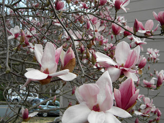 The magnolia is almost in full bloom. With this warm weather, it opens more every day.