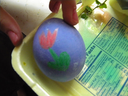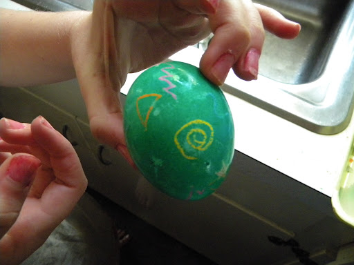 Every year, she starts collecting ideas for how she’s going to decorate eggs this go round. This year she broke out the box of crayons and got festive with it. Among the highlights: