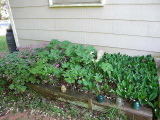 Lillies of the valley are the best smelling flower ever.  Not only were they in my bouquet when we got married, I wore a crown made of them and hellebore.  (Perhaps why both are in my garden today?).  The entire front yard has such a nice smell right now, especially the front porch, adjacent to that bed.  That bed has taken years to fill in. There really was not a coherent plan to it, we just kept dumping shade loving plants and I kept hoping the lillies would fill in, which they finally did, after I don’t know how many years.