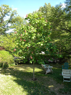 It’s a horse chestnut buckeye tree Pat planted a few years back to replace a rather large, dead evergreen tree.  It’s not quite big enough to be as glorious as the magnolia or the dogwood, but it will get there.