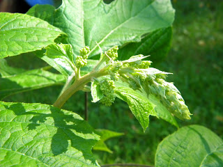The oakleaf hydrangeas are showing buds too.  We have two of them, both planted two summers ago and this is the first bloom for both.