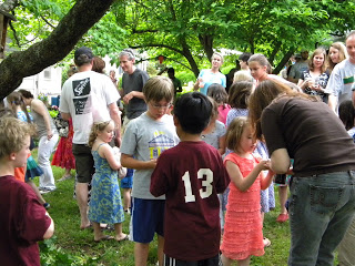 We just kept inviting everyone we know.  It started out word of mouth and at some point, became actual issued invitations.  People who ‘made the list’ always told us how excited they were to finally be invited.  Apparently it was quite the bash.  I’m a little modest about it, since you know, I’m the hostess and you always think your parties are legendary and fabulous.  But people were always surprised at who all was here.  Worlds collided in our front yard on a Saturday in May.    We invited all the neighbors around us who might be disturbed by the loudness of the party.  We invited all the neighbors from a block up who would walk by and chat us up about the garden, about school, about whatever.  Anyone that might walk by and be offended we were having a party and didn’t invite them.  We invited our friends and coworkers.  Edie invited her school friends, first her preschool friends, then her elementary school friends.  Every year the party got just a little bit bigger.  Once you showed up and made the list, you were on it.  We did a purge a few years ago, but added just as many on as we had taken off, plus some.   We’ve been told our party is the one of the most eclectic mixes in town.