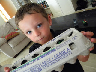 In a moment of brilliance, I handed Ian an empty egg carton box and told him it was a ‘treasure box’.  That game lasted us for days.