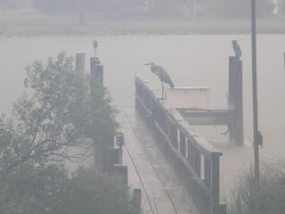 And, in the middle of a serious deluge one morning, a visitor on the dock.