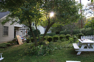 By the front porch there you can see the piles of plywood and bouncy seat I dragged down from the attic, never to be in there again. And the window we replaced last fall that needs to become a coldbox for my garden.
