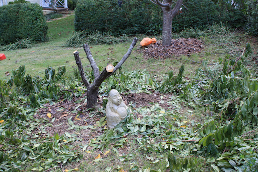 He also trimmed the saucer magnolia back. He removed one of the trunks and trimmed many of the lower branches off, so that you don’t have to duck to walk under the tree.