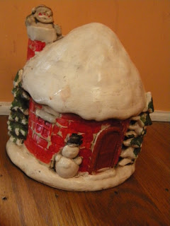 I start slowly, with two special decorations.  The first one is my Santa house.