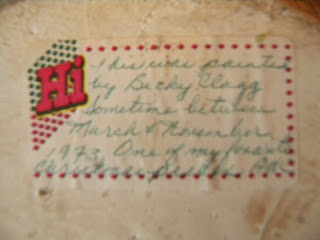 According to the sticker on the bottom, hand written by my mother, I painted this all by my big girl self way back in 1973.