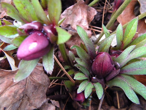 Thankfully, the weather was warm this past weekend.  Warm enough I wandered around outside and noticed my hellebore starting to bloom.