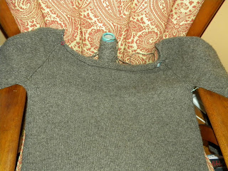 Both are projects I had pie in sky visions of being done by Pat’s birthday, which is a week from today.  The quilt isn’t going to make it – even if I do get the back fully removed, I still have quite a bit of repairs to make to the top of the quilt. It could be an anniversary gift.  But the sweater?  I think I could make that happen in the next week. The weather forecast for the week looks conducive to sitting and knitting.  And having spent a big chunk of Saturday cleaning, I think I could reasonably pull it off.