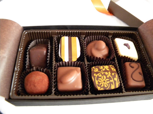 The sampler came with a small brochure that lists all their fine chocolates and includes color pictures, so there’s no need to stab the bottom with your fingernail to see what flavor you are holding. It’s a nice touch if you are inclined to sharing or if you’re like me, only share what you aren’t entirely wild about. Which doesn’t apply when it comes to Gearhart’s. I just like certain ones (The Earl Gray, the Taj and now the Dark Chocolate Caramel) better than others.