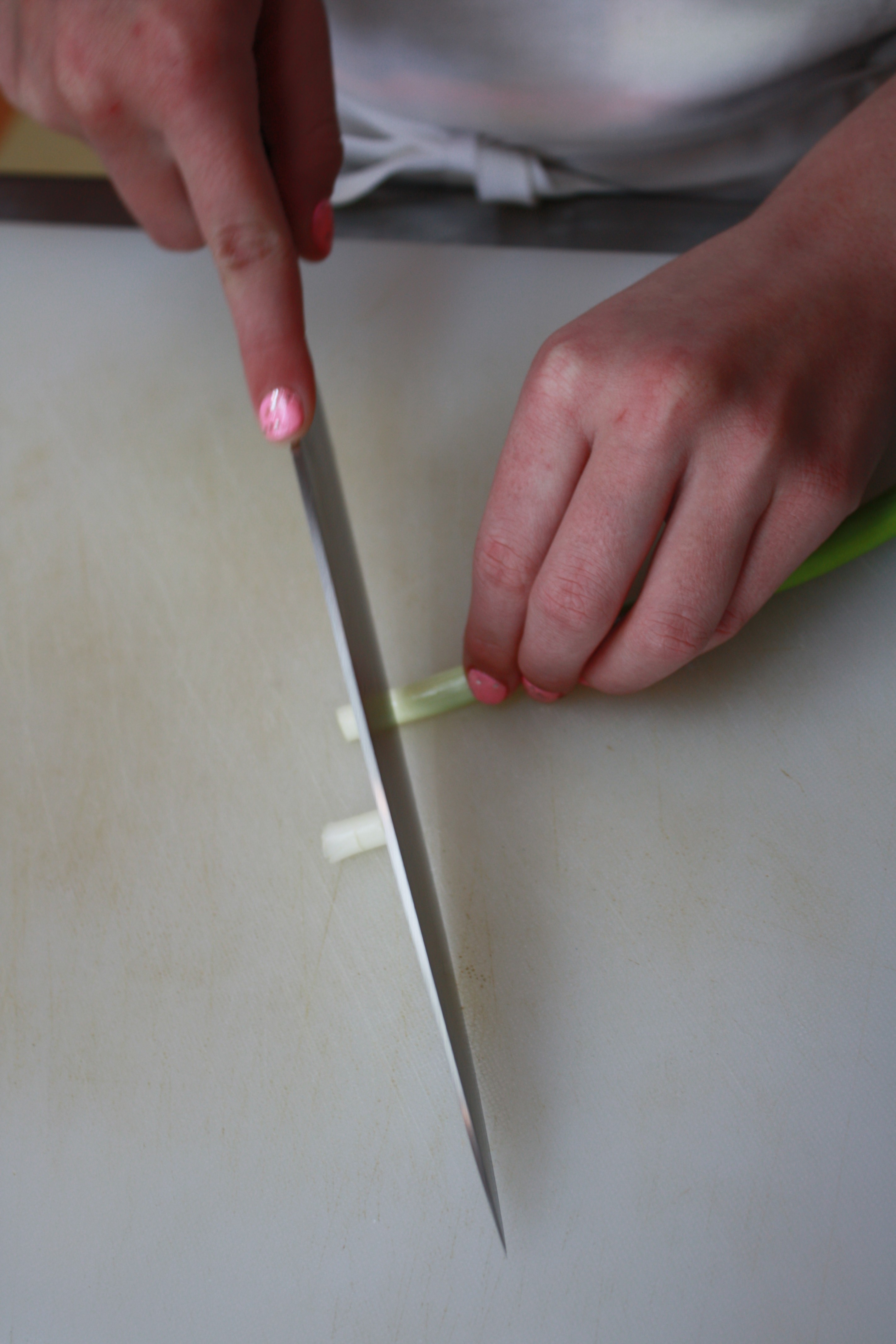 IMG_1461Martha encouraged the girls to try using the longer bladed chef knives, walking them through the proper techniques. Some of the girls were definitely nervous about it, but they all tried it.  Two of them switched up to smaller paring knives, but one of them realized the bigger knife was easier and went back to the longer blade.  I knew she’d come around.  (That child in question was mine.)