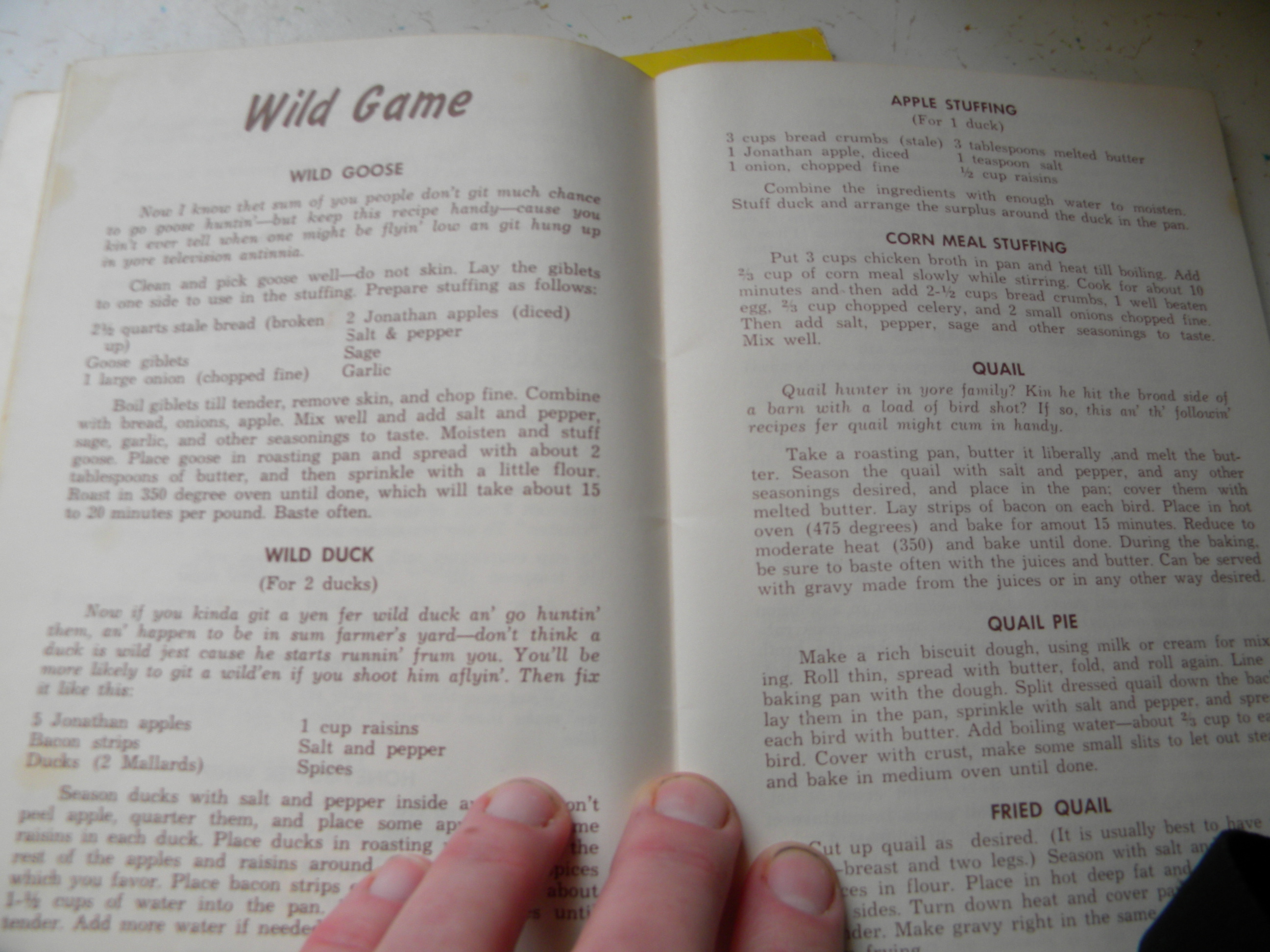Upon further inspection however, I noticed that many of these recipes are well written, even the possum and coon recipes.  That’s right.  Possum.  And Coon.  And Rabbit.  And a few other treasures like mincemeat (with beef or venison tongue) and paw paw pie.  These little gems are a fun addition to my cookbook collection, definitely.