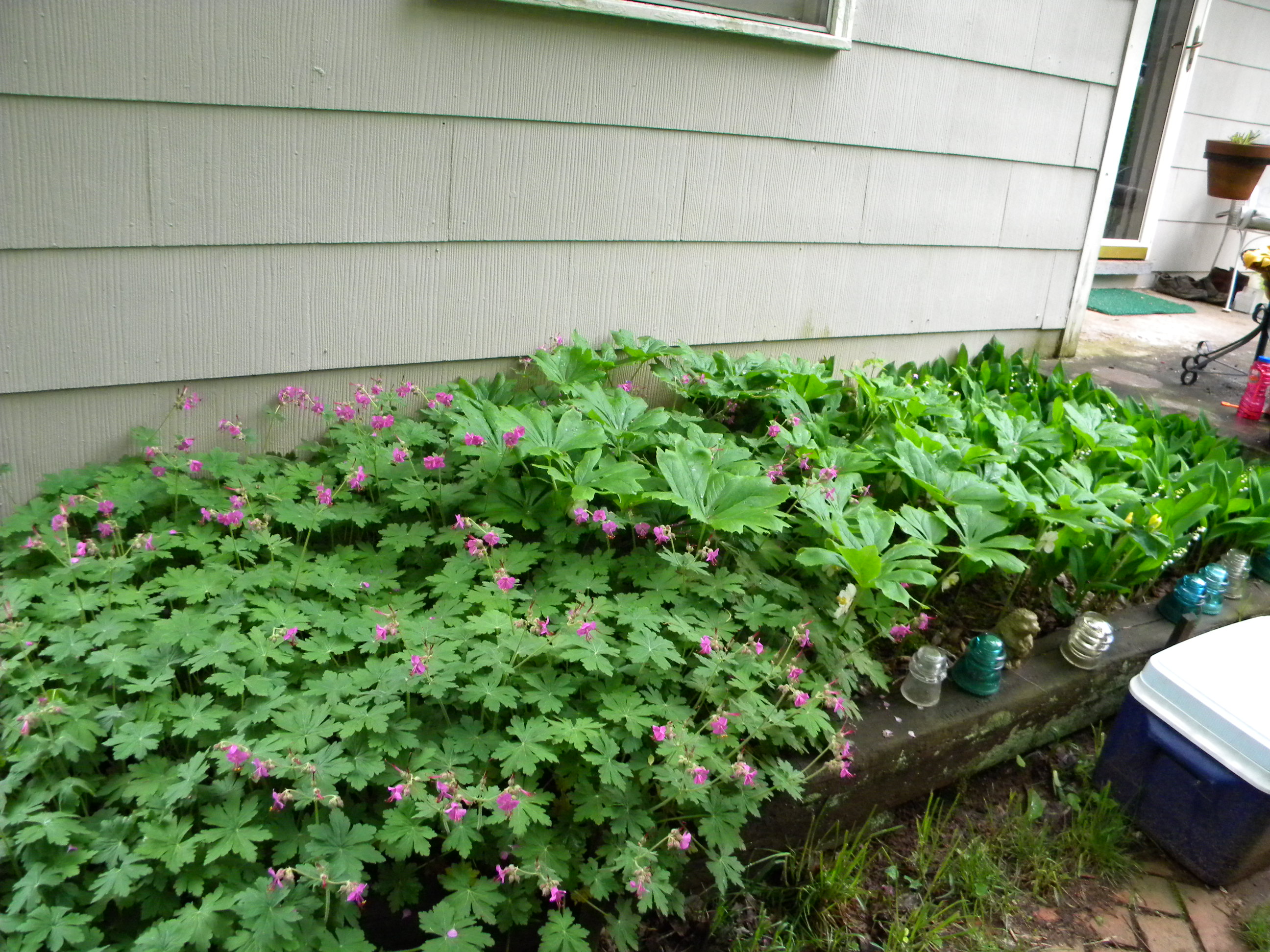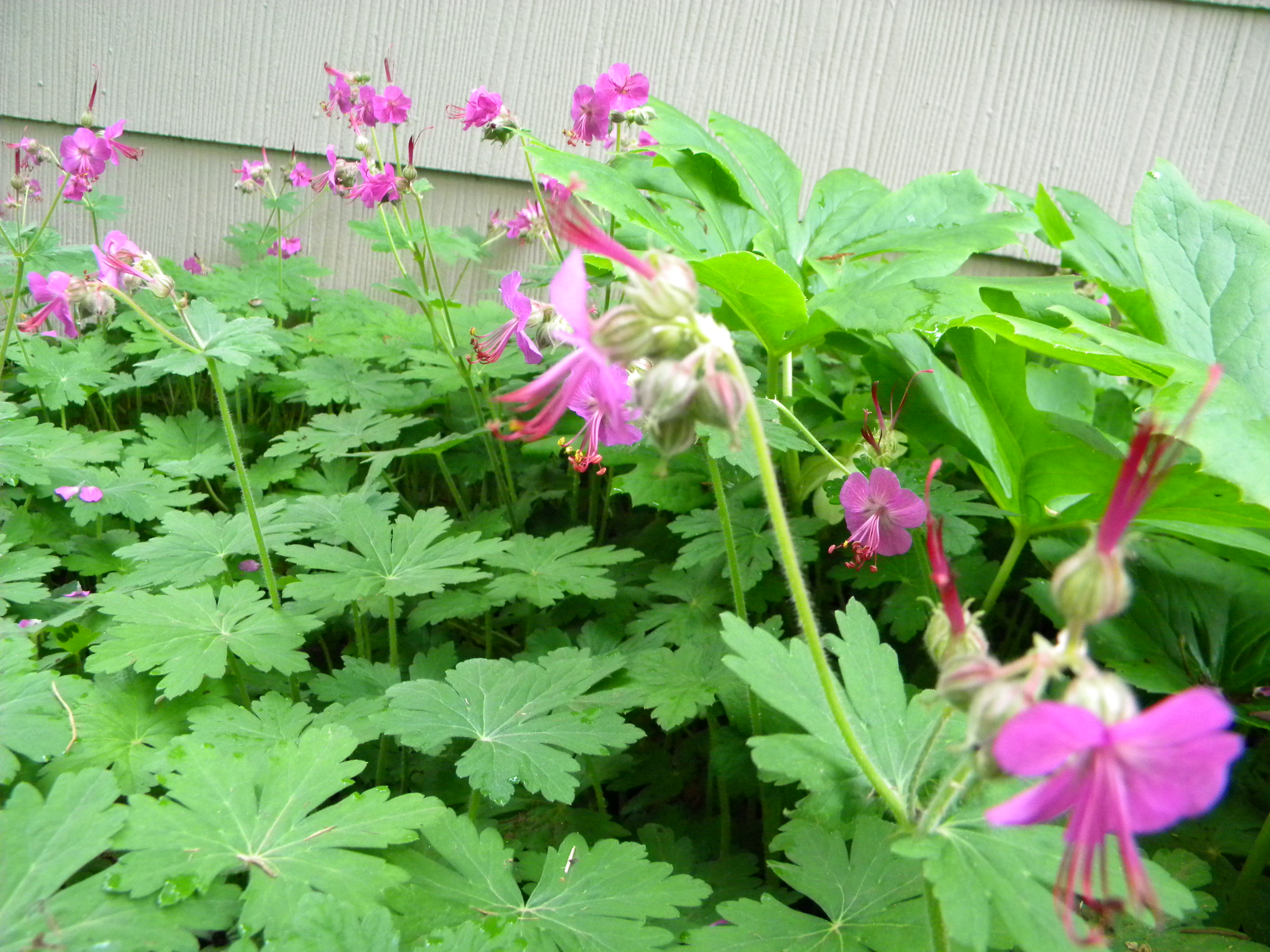 The front flower bed under Edie’s window, to the left of the front door, is in full bloom.