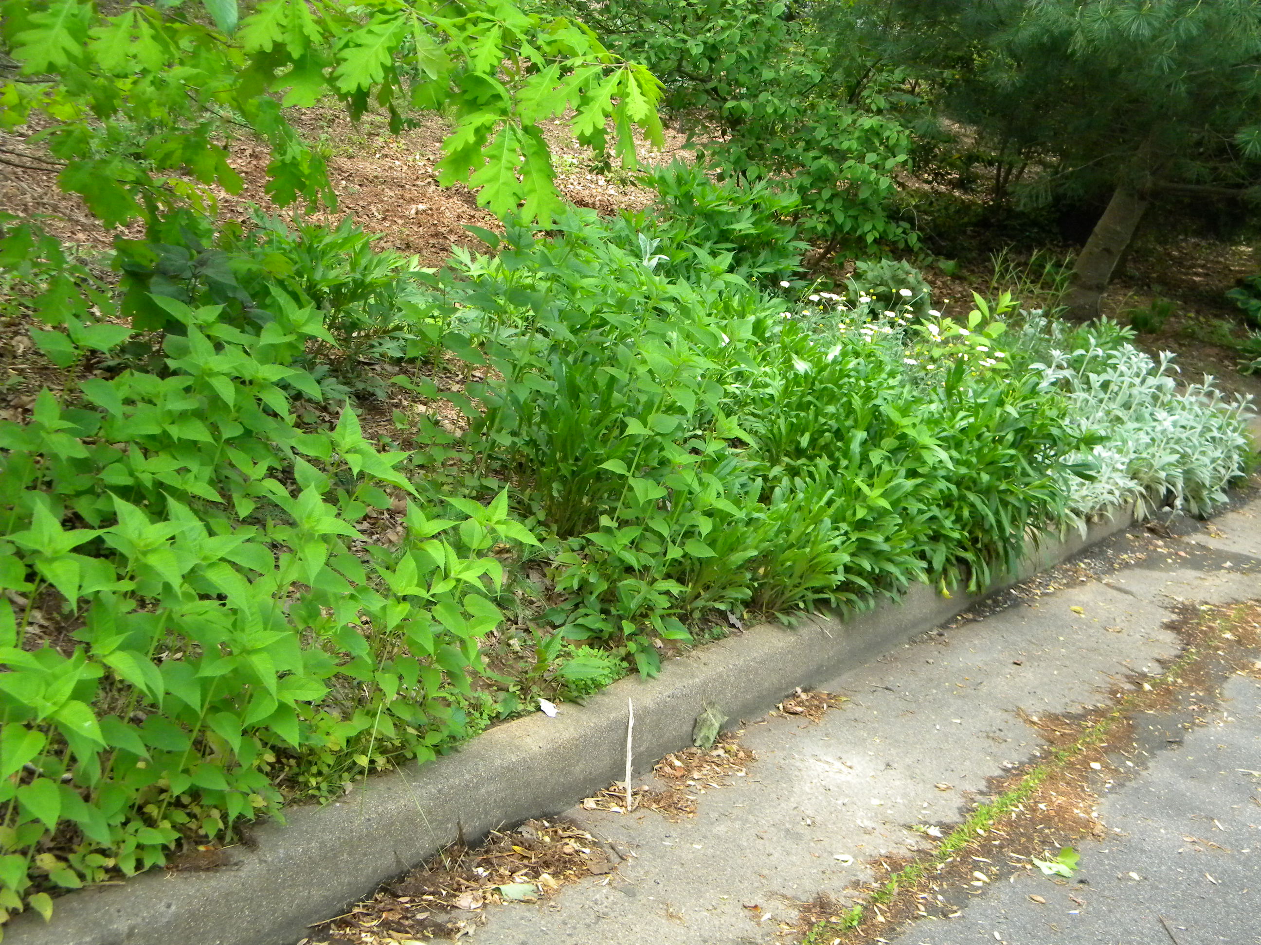 And the down by the side of the road garden is looking quite lush. Anyone want bee balm, daisies, zebra grass or other miscellaneous plants? Come on by. I need to do some thinning.