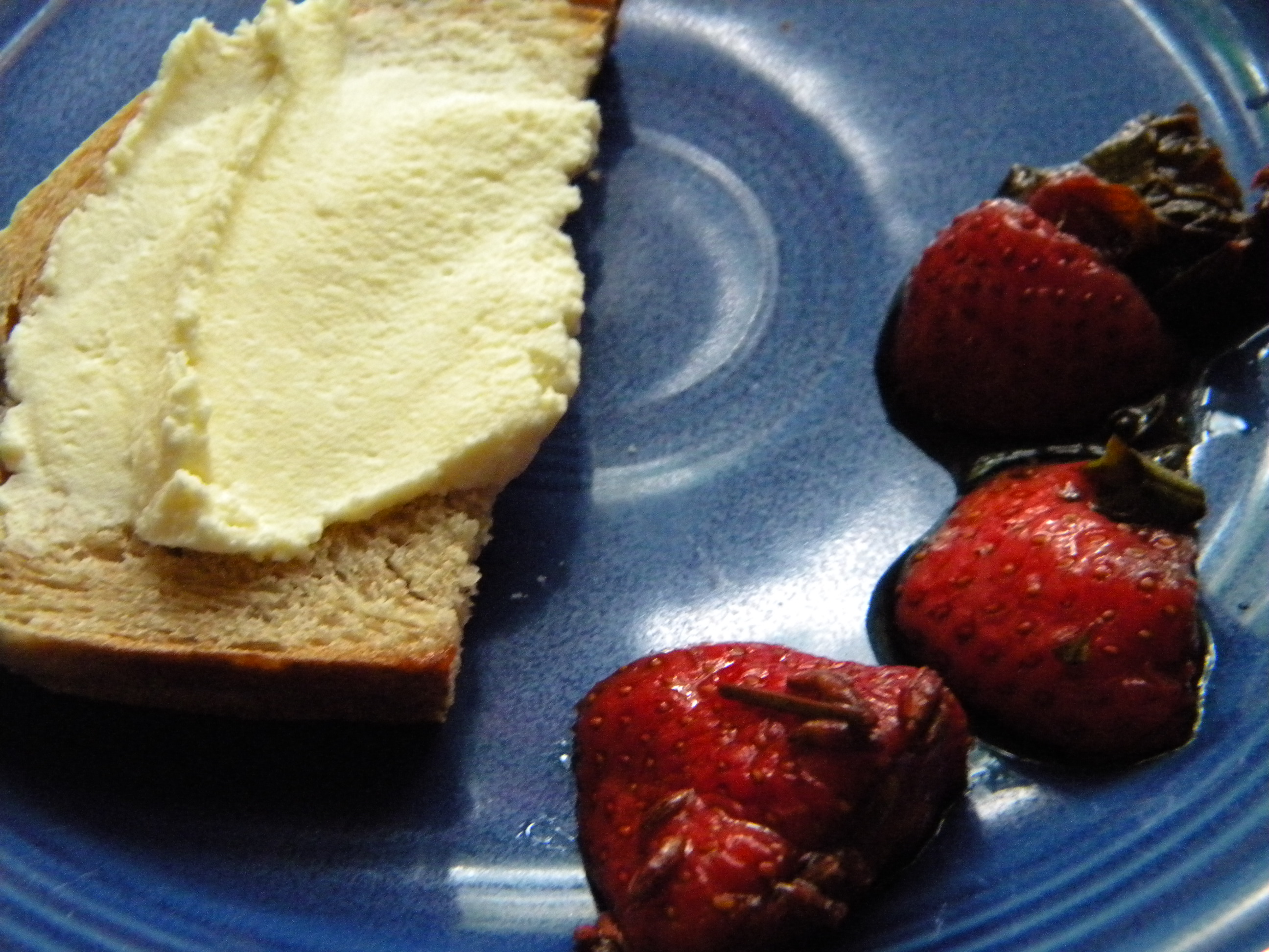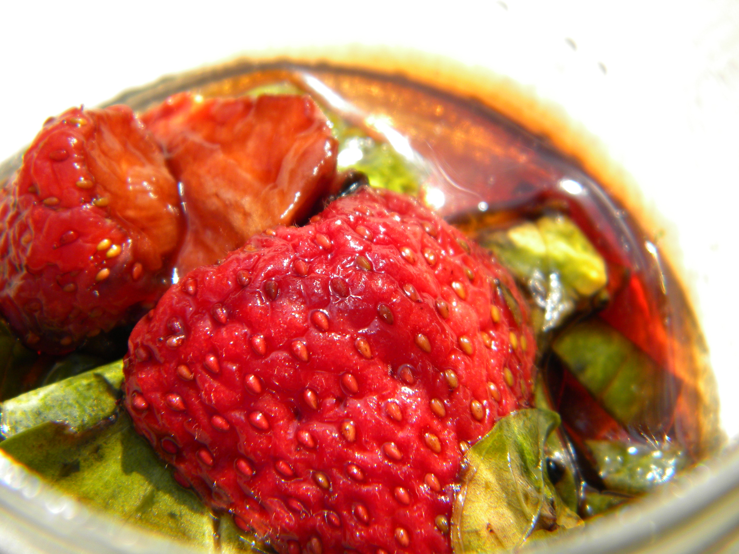 All in all, pickled strawberries resemble macerated strawberries, if you’ve ever had them.  In the next round, I’m going to try processing them for a shorter period of time and see how that works out.  I’d like to be able to put a few jars up on the shelf to pop open in a few months, something you can’t do with quick pickles.  I’m also going to play around with the herbs.  I think a hint of lavender added to the red wine vinegar/mint recipe would be interesting.