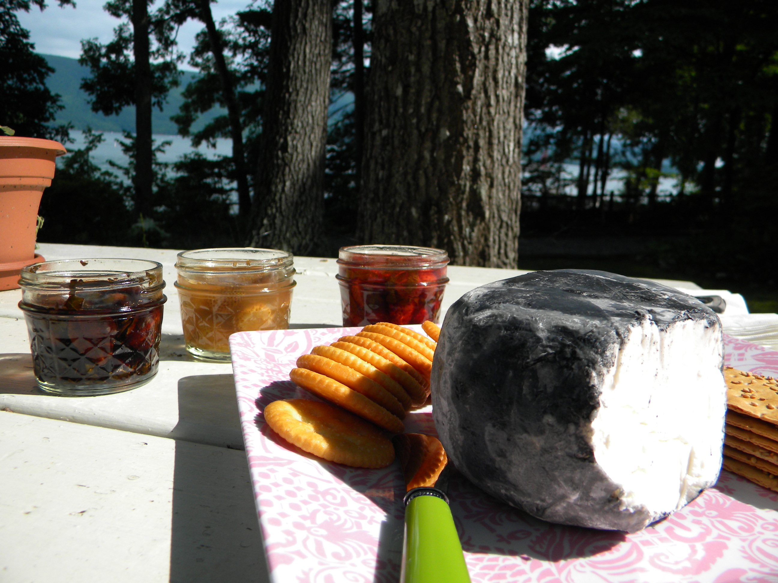Where was I? That’s right, pickles. Strawberry pickles. I was overdue to pull out the ones I’d put up last month and I knew Mollie would be up for a tasting session. She even had a huge ball of lovely local-to-her goat cheese covered in grapevine ash that we served it with, as well as an assortment of crackers.