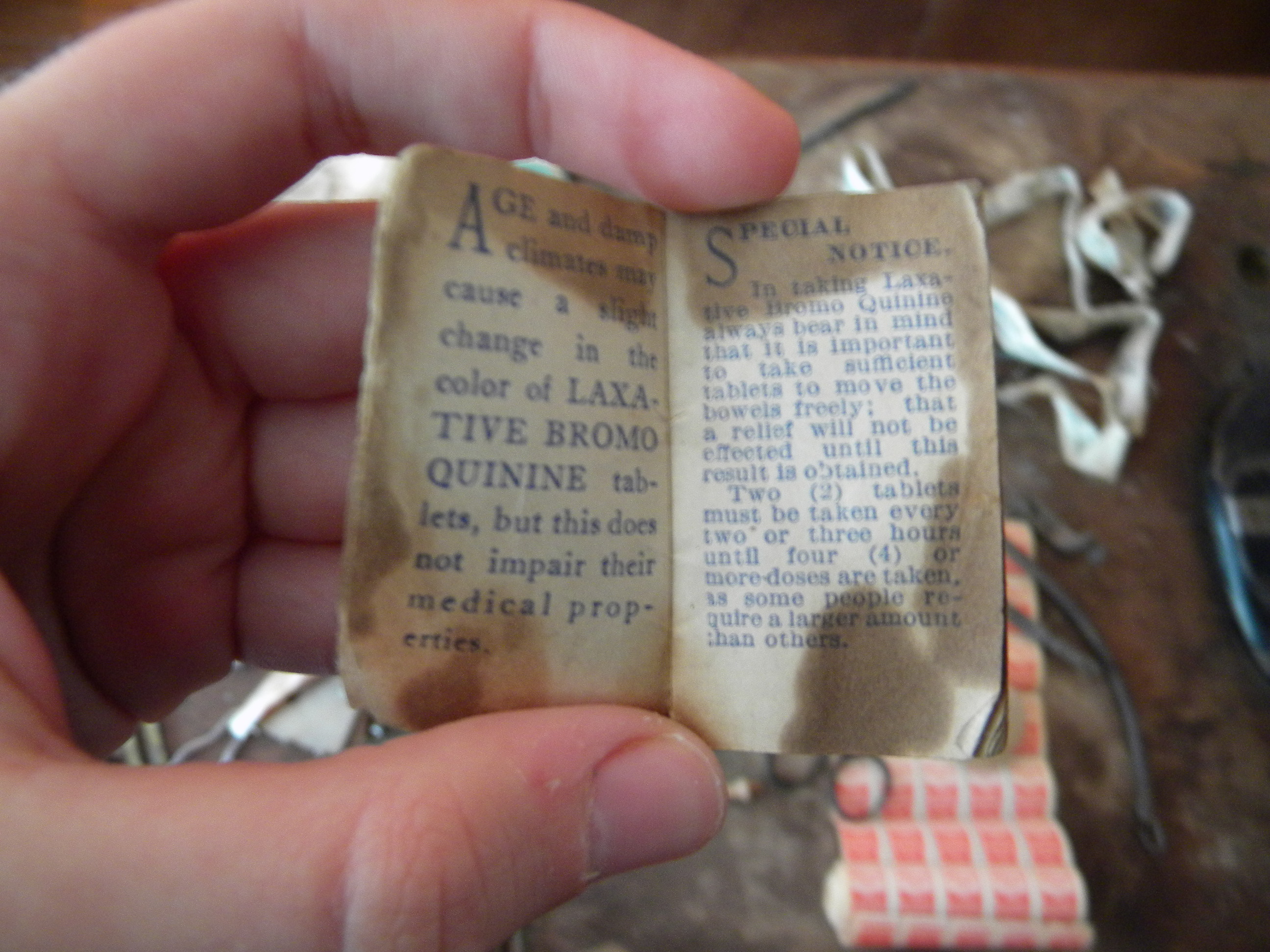 name 049 In the thumbtack box was a small book labeled IMPORTANT READ IT.DSCN4257Along with the directions for use, is an old marketing book for Laxative Bromo Quinine.name 075