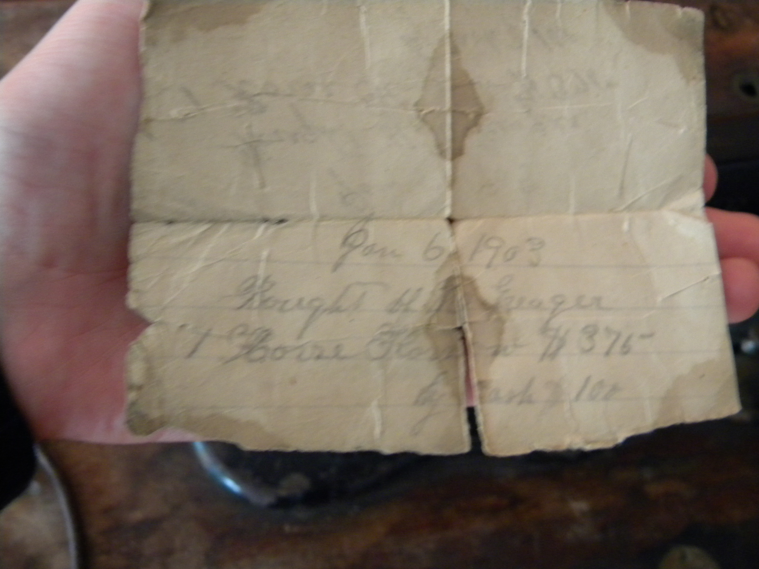 DSCN4276More than a century ago to be exact.  This handwritten note, written in pencil, dated 1903, was for the purchase of a Horse Harrow for $375, with $100 cash down.