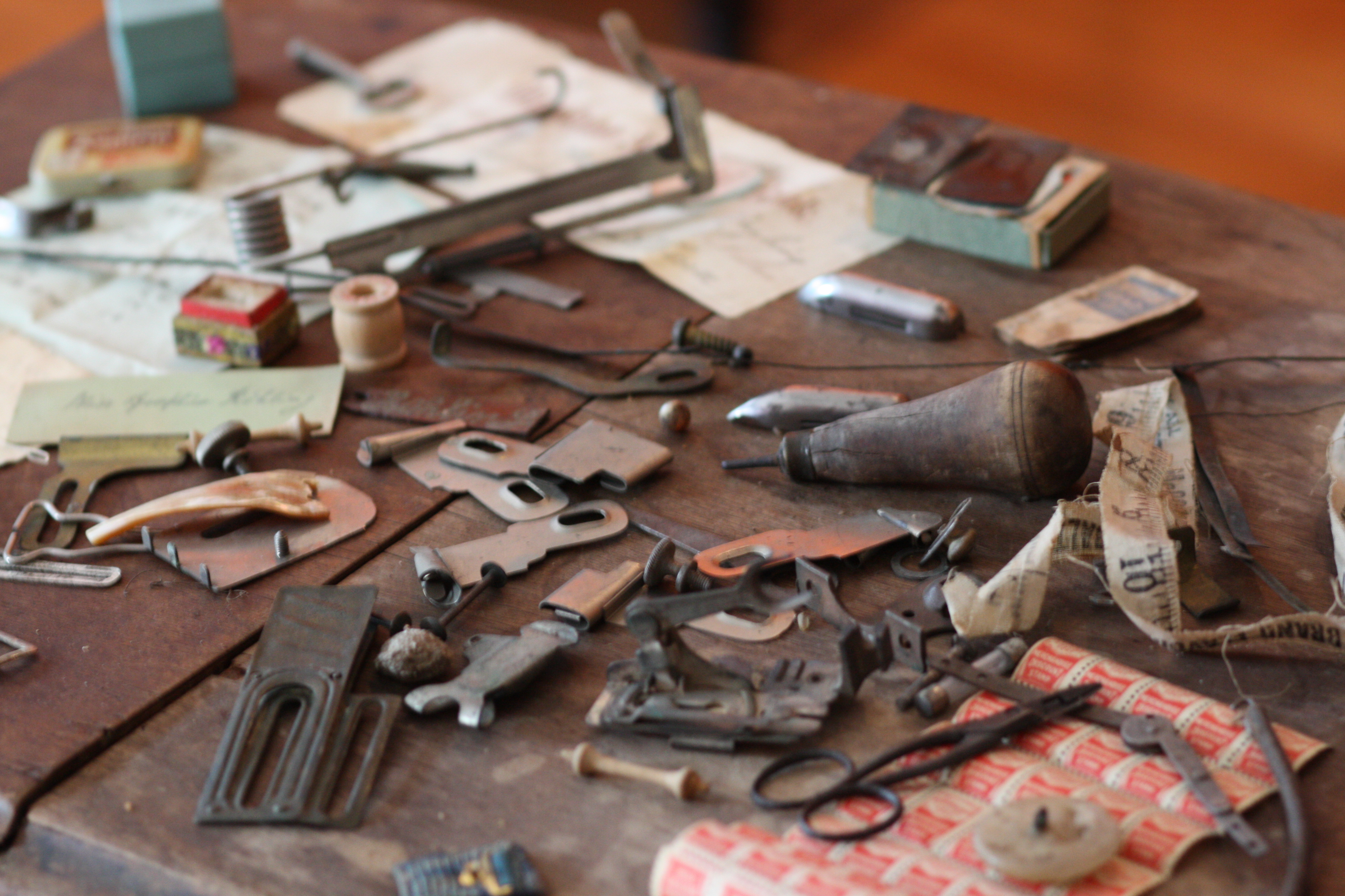 name 053Which upon getting home, Kevin had gone through the drawers and pulled out a bonanza of sewing tools and other fascinating tidbits of the owner of the machine a century ago.