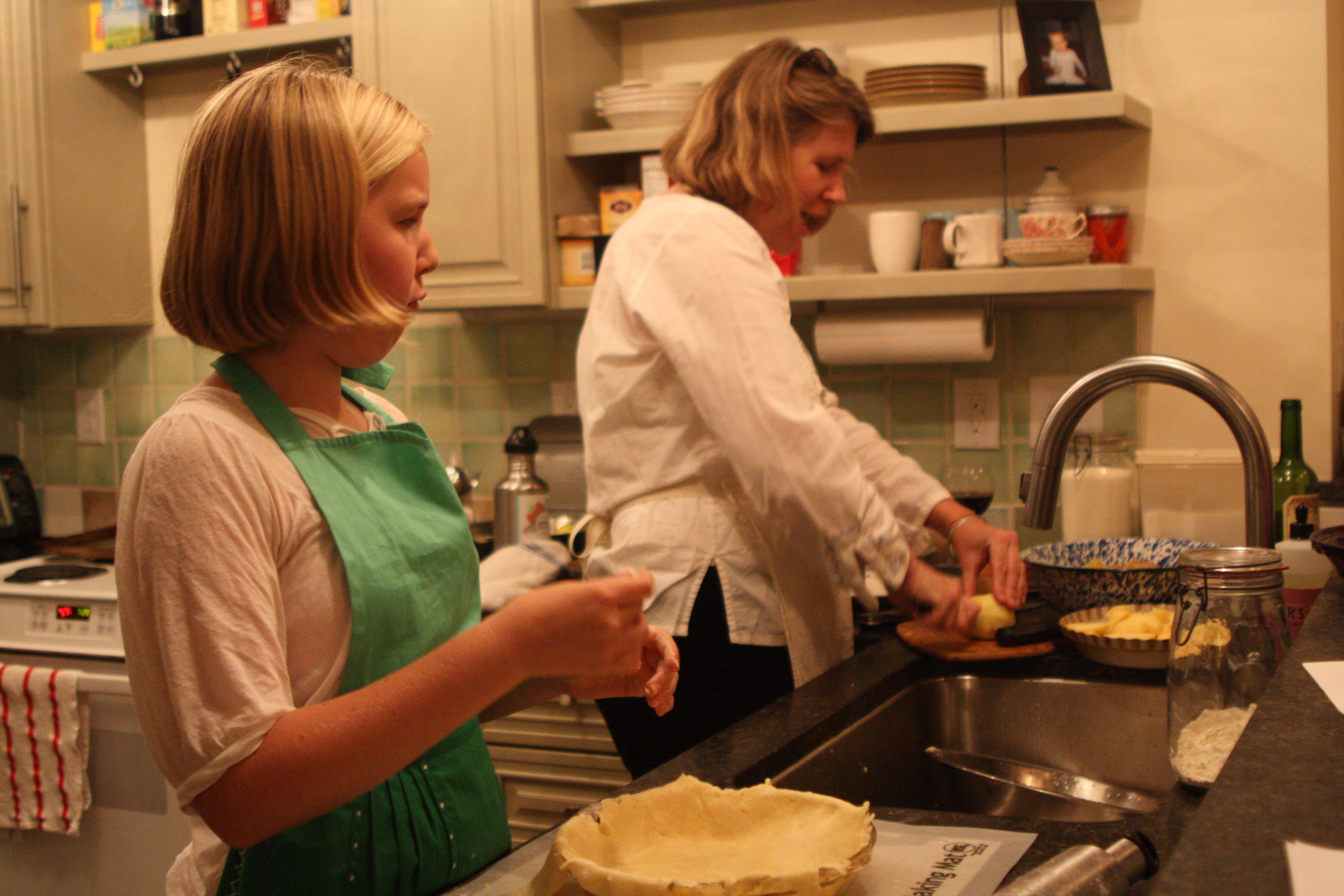 name 028It seems that Edie, who had offered to come be my assistant that evening, was completely bothered that I was showing the ‘easy’ way of rolling out a pie crust.  I have long admitted she is far better at rolling out a crust than I am – she’s been rolling my crusts out for me since she was a toddler.  She has little patience with the fact that I struggle with making things like pie crusts look ‘perfect’ – I go with a more rustic look because hey, that’s what I get to work for me.