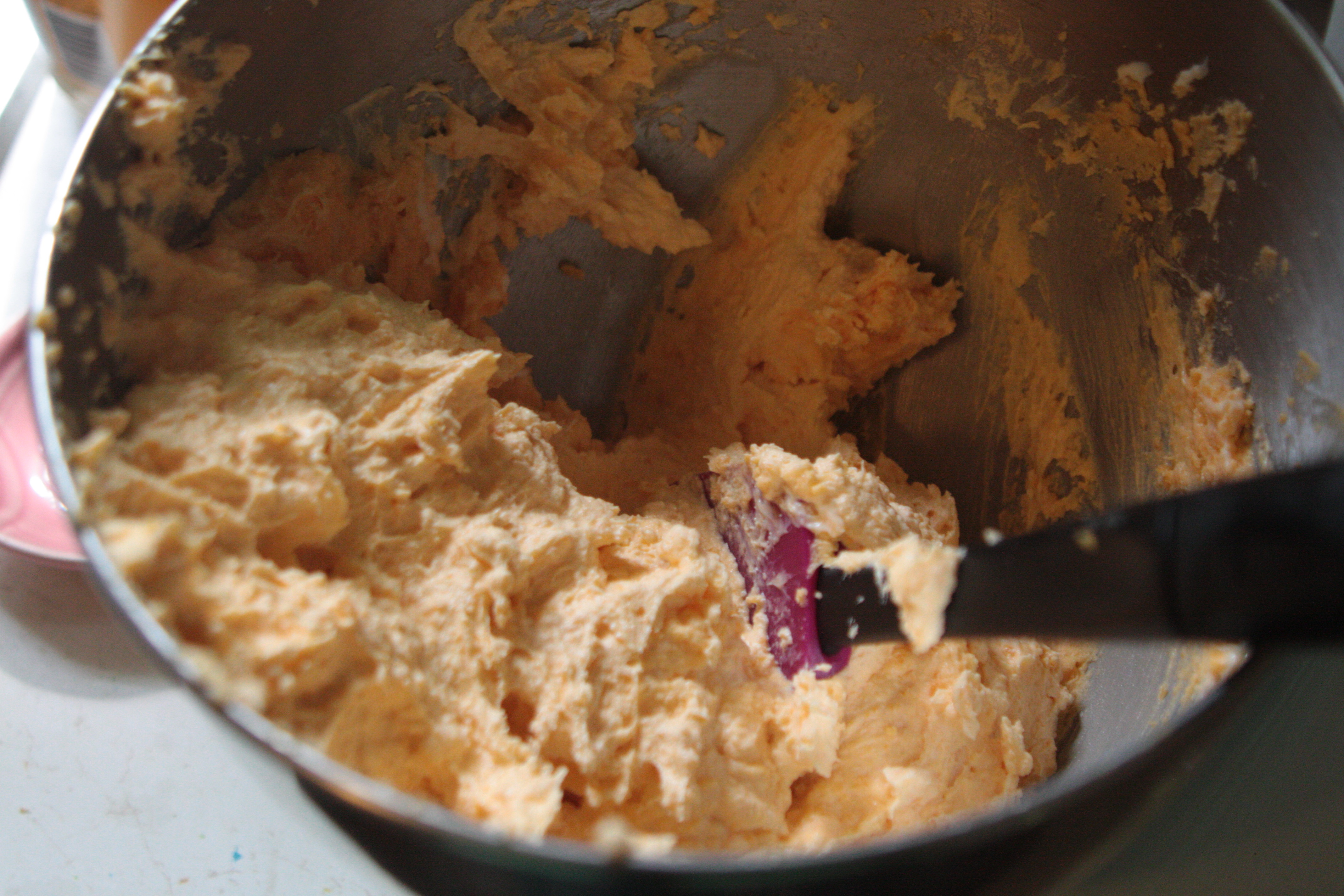 IMG_9133Add mayonnaise – about 3/4 cup to 1 pound of cheese – and a 4 oz. jar of drained pimentos.  Whip the daylights out of it until the whole thing is well mixed and fluffy.