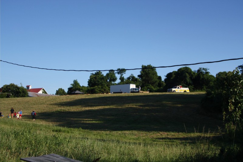 Speaking of fireworks….Will’s boat is housed in the boathouse behind the LOVE sign there, across the river from the marina. When we drove over there to get on the boat to watch the parade that afternoon, we came across the guys setting up the fireworks, right there, in the field behind the love shack.
