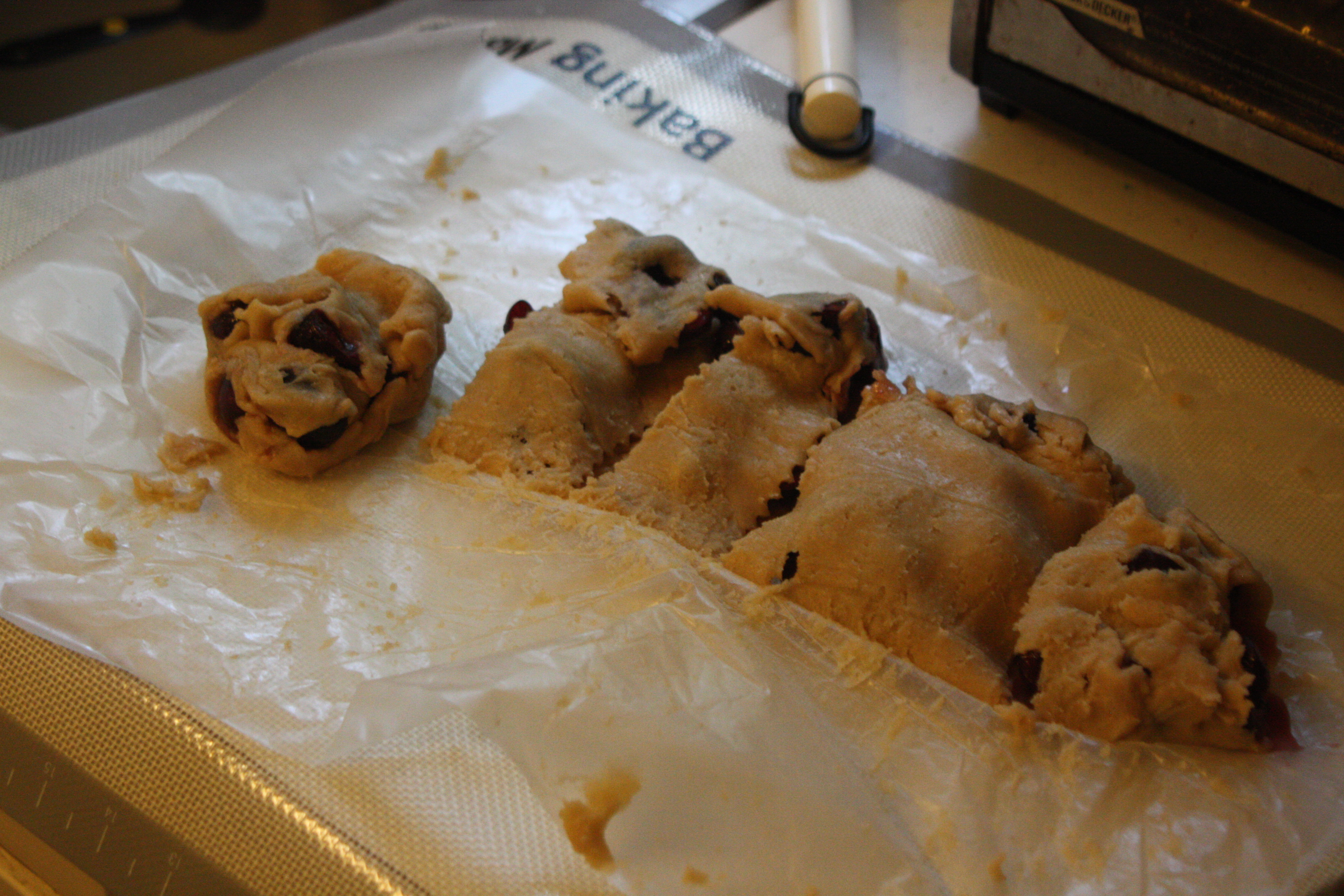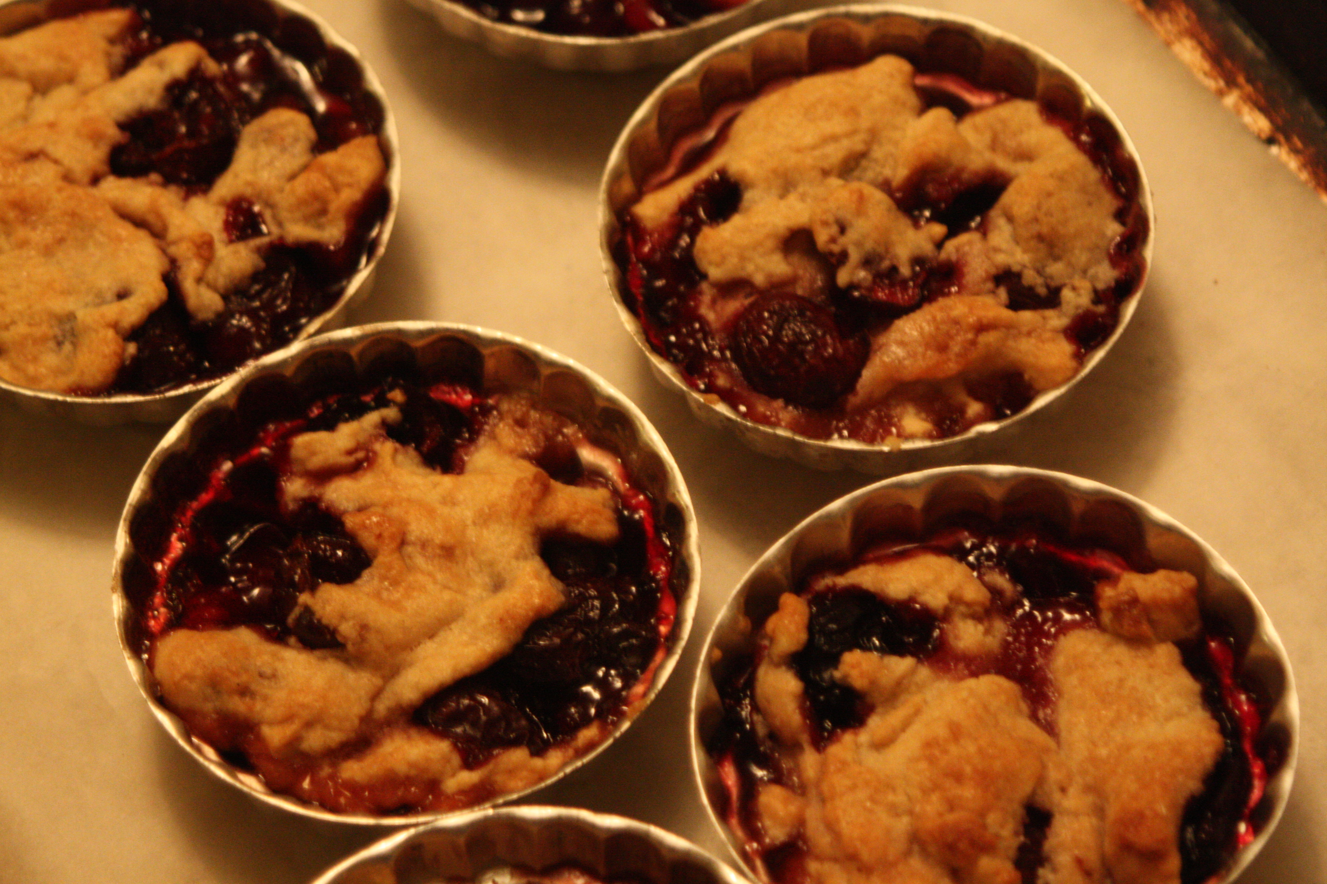 IMG_1387I grabbed some of my mini cake tins and dropped the wannabe hand pies into them.  Technically, they were small enough to fit in your hand, although at this point, Edie kept telling me to STOP calling them hand pies, because they weren’t hand pies, they were never going to be hand pies.  There was also a mini-rant about how recipes are there for a reason, they are not always suggestions and sometimes one should consider following them. The proper technique for hand pies (according to my daughter) should be made with dough that has been cut into small circles, folded over and had the edges pinched.  Clearly, the recipe I looked at was a hack job.  I cannot properly convey the tone of voice and eye rolls that came with this, but if you’ve ever lived with a twelve year old girl, especially one that takes her baked goods very seriously, is a far better baker than you and has described the taste of bakery buttercream frosting with food dye it in as ‘a computer threw up in my mouth’,  then you can probably picture it.