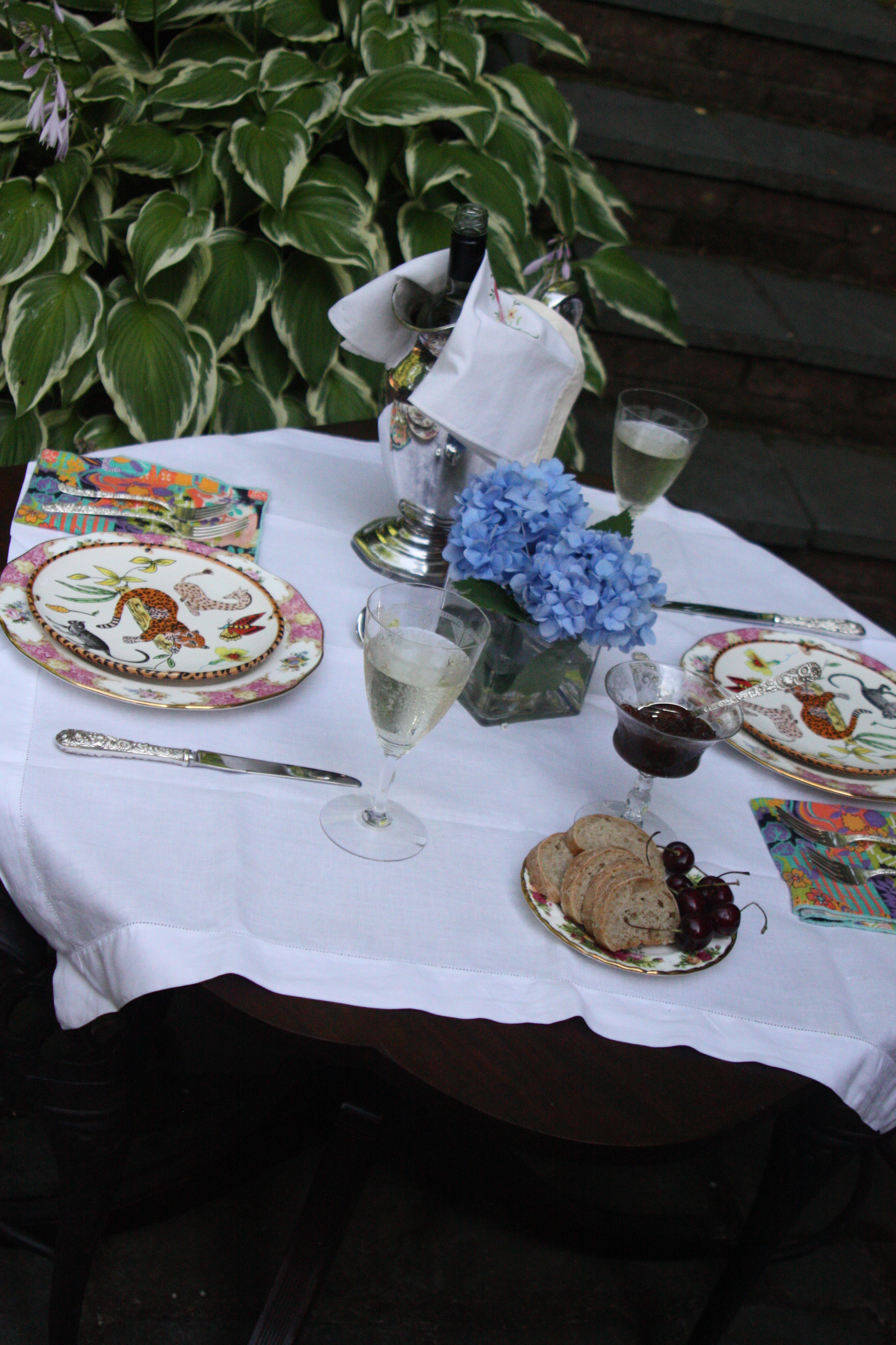 IMG_0014My friend Nancy assisted me in staging shots to help promote the event.  It was great fun pulling together our various collections of dishes, serving ware, linens and the like.  Of course wine was involved in both the strategy and execution sessions, to set the mood of course. IMG_0004This, the lining up of instructors, staging photos, working on the website was the easy portion. The real work of promoting and making this happen lie ahead of me in the coming weeks.  Which means getting back on social media (I’m looking at you, Twitter) and chatting this up with everyone I can, starting with all of you.  You’d think an afternoon in the country, with beautiful views of the Blue Ridge, learning about wine, cheese and other aspects of entertaining with charming instructors like Nadjeeb and Robyn would sell itself, but there is some work involved.  Thankfully, it’s fun work.
