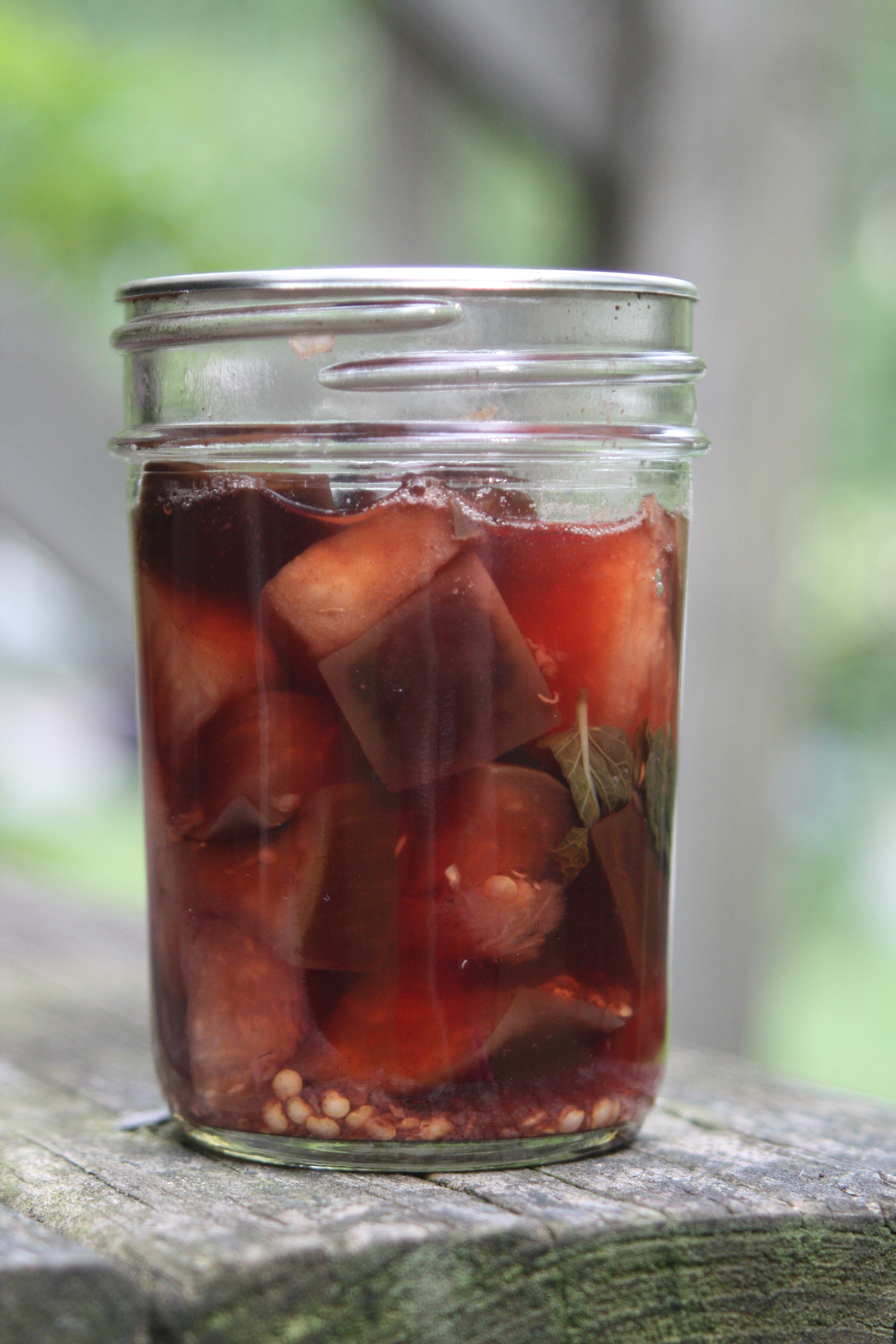 While I spend a good bit of time from about mid-strawberry season straight through to the holidays putting up produce in some fashion, this year I haven’t felt like I’ve been experimenting that much. I’ve actually tried some new recipes – the black forest jam is one, boozy cheeries is another, but those were new recipes with items I put up every year. I’m not sure why the pickled eggplant feels like I’m branching out big time – they’re pickled, which is never a stretch and after my previous success with putting up eggplant, I vowed to myself to put more up this season. Funny how one new thing can make you feel like you’ve expanded your world and your palette exponentially.